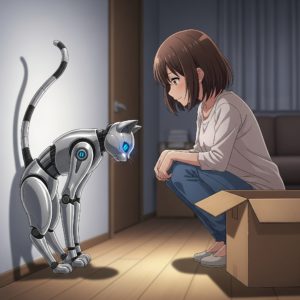 箱がリニアモーターのスムーズな音と共に開くと、中から現れたのは、雪のように白い人工毛皮(シンセティック・ファー)と、サファイアのように青い光学センサーの瞳を持つ、美しい猫型ロボットだった。