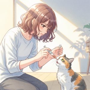 薬を飲ませる時は、喉を優しく撫でてやりながら、「大丈夫、すぐに終わるからね」と、子供に言い聞かせるように声をかける。