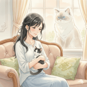 三週間後、母猫が、初めて、栞の足に、そっと、体をこすりつけてきた。